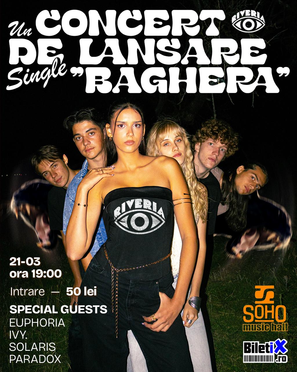 Pe 21 martie, scena Soho Music Hall devine locul unde energia live întâlnește sound-ul nou al trupei RIVERIA, care își lansează oficial noul single „Baghera”.